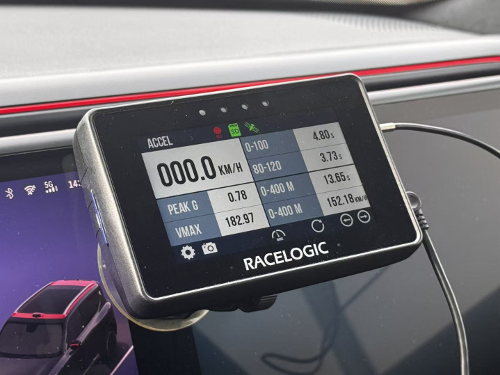在只剩5%电量的情况下,我开启“BRABUS”模式也能跑出4.8秒的0-100km/h加速成绩,接近普通双电机精灵#5的水平,不过冲到400米时的尾速只有152km/h,用时13.65秒,极速也只跑到近183km/h,说明亏电时,它还是有些后劲乏力。